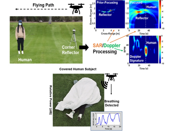 UAV-borne radars to locate human subjects and provide real-time physiological information like vital signs and body movements.